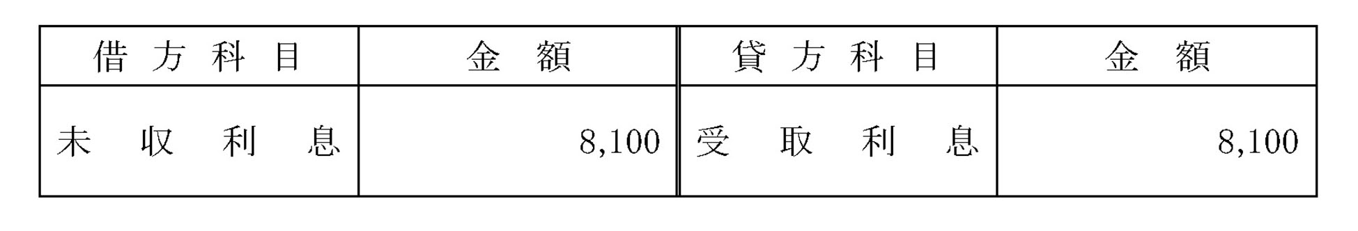 期中の6月1日に銀行より300,000円を借入れ、現金を受取っている。この借入金は返済期限が1年であり、利率年2.4%、利息支払は返済時一括払いである。6月1日から12月31日までの利息に関する修正仕訳を行う。(決算:年1回、12月31日)