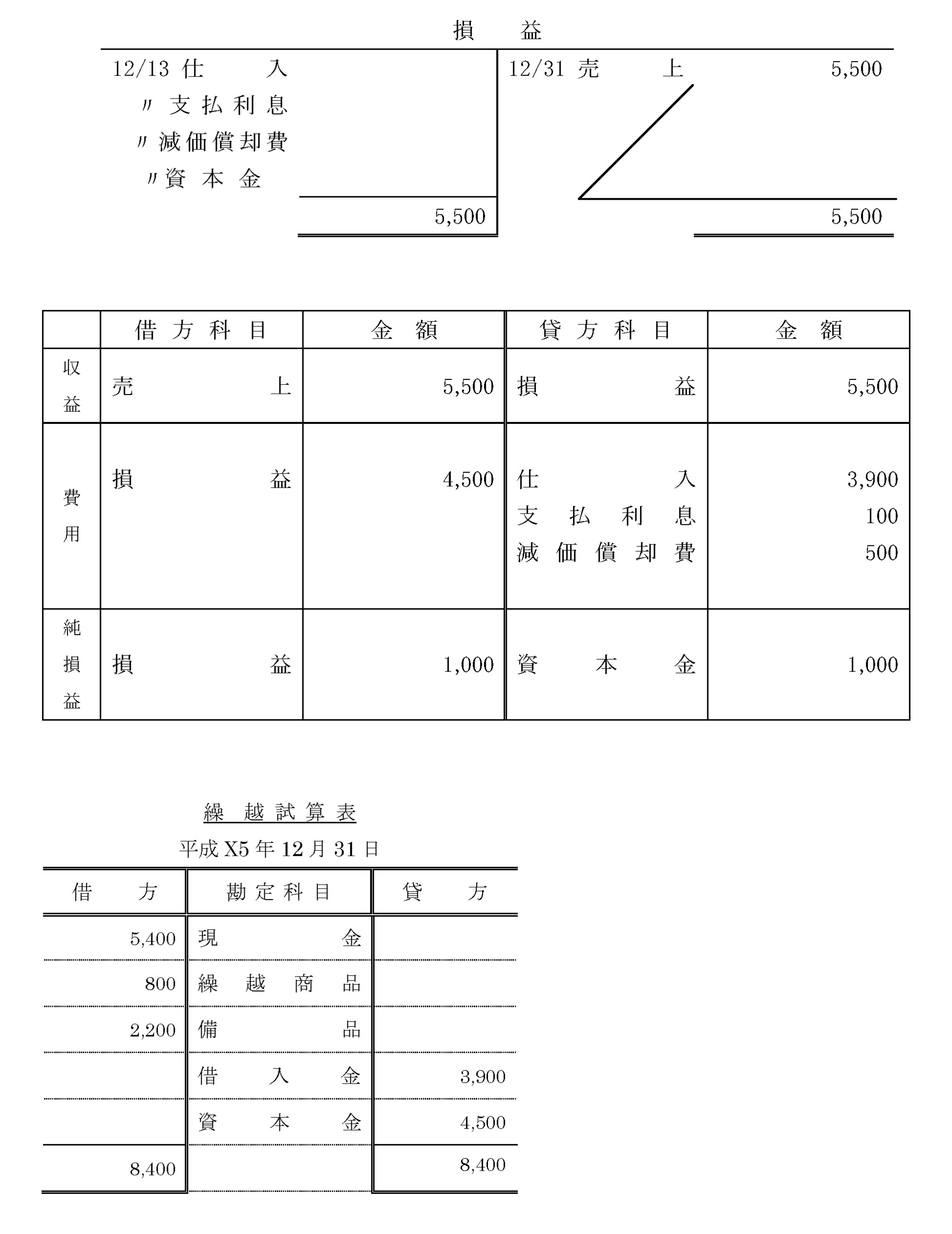 2. 1.の損益勘定の残高を資本金勘定に振り替える。